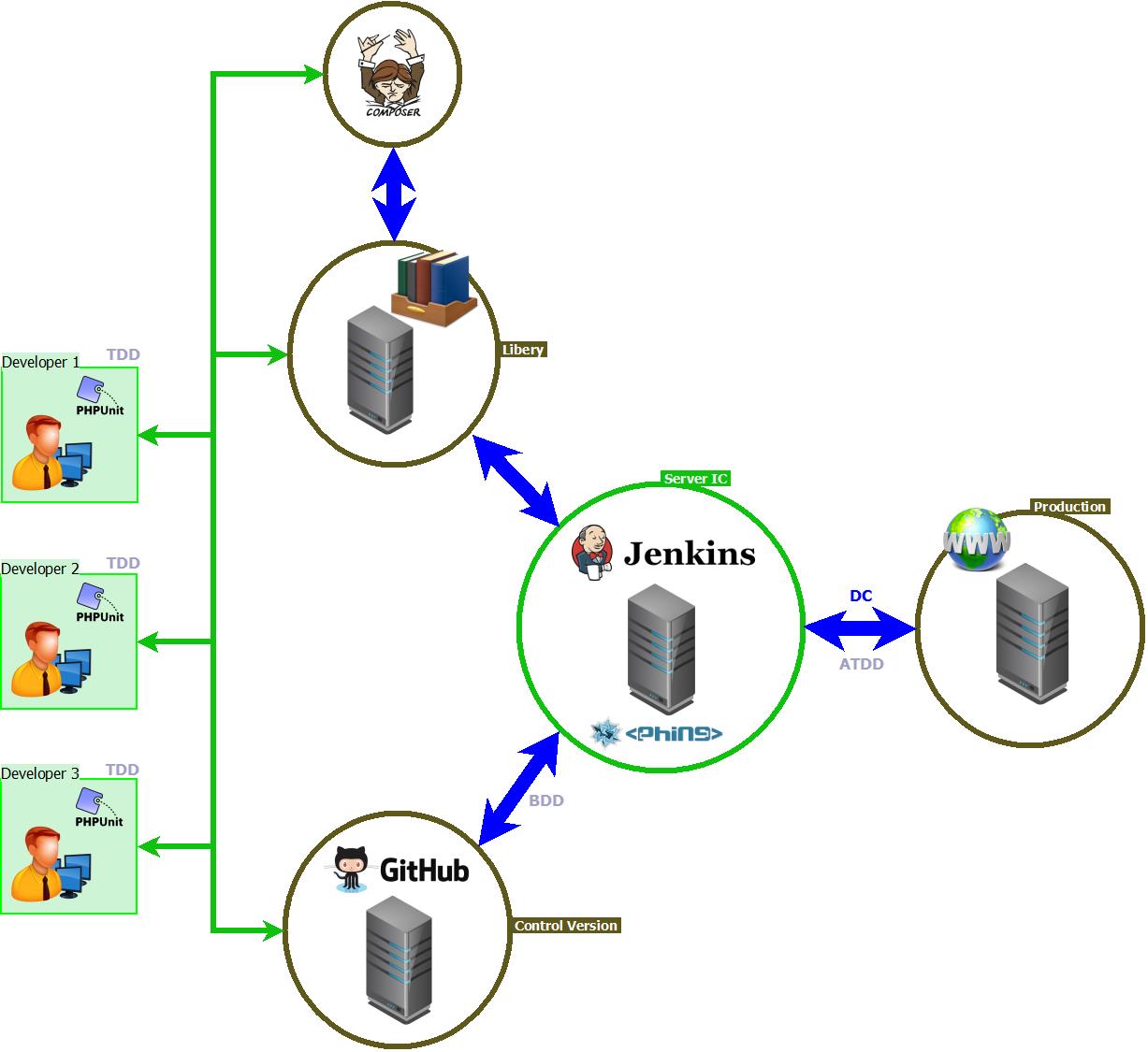 - Jenkins: Comprueba que Phing a finalizado con éxito, procede a crear nuevas versiones.